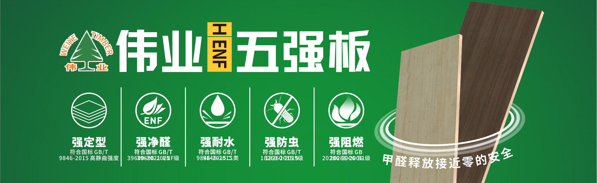 偉業(yè)牌板材打造一支專家技術團隊,擁有國家發(fā)明專利生產工藝,憑借無機生態(tài)膠技術和30年板材生產經驗,其產品品質每項指標均遠優(yōu)于國家標準